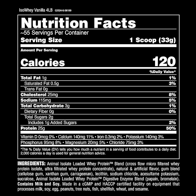 - Premium Whey Protein Isolate - Loaded with the highest quality protein sources, Animal Whey delivers a potent punch of 25 grams of protein per serving. Fast absorbing & high bioavailability to support muscle growth and recovery