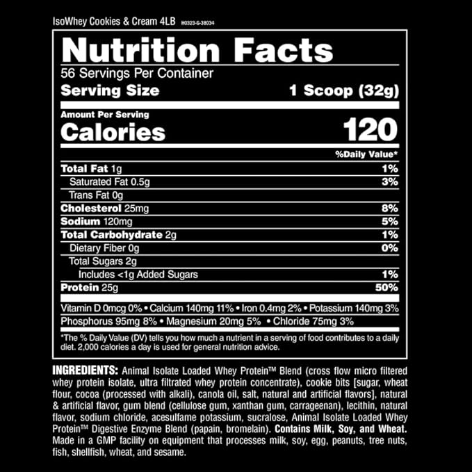 Animal Whey Isolate Protein Powder - Loaded for Pre & Post Workout Muscle Builder and Recovery with Digestive Enzymes for Men & Women - 25g Protein, Great Taste, Low Sugar - Cookies & Cream 4 lbs