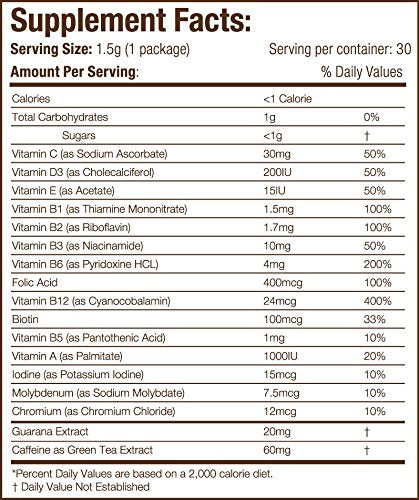 - Contains 15 vitamins and minerals with extra vitamins B6, B12, guarana and now with green tea extract