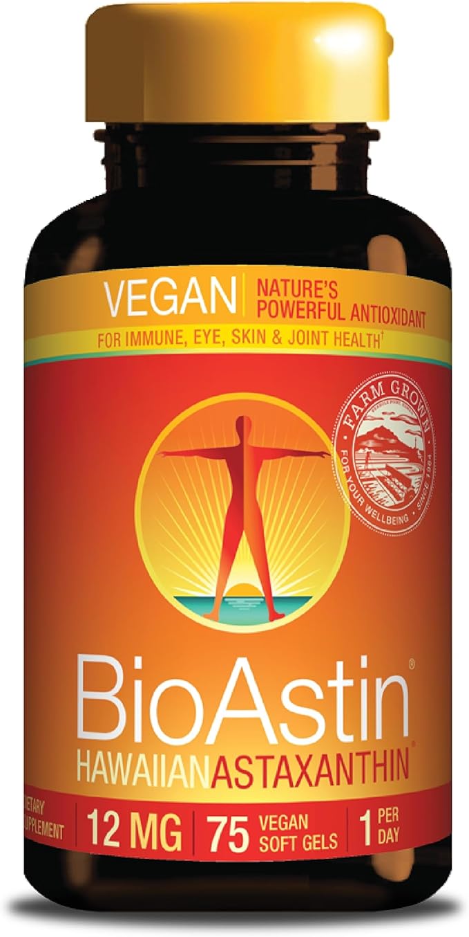Nutrex Hawaii Vegan BioAstin Hawaiian Astaxanthin - 12mg, 75 Softgels - Farm-Direct Premium Antioxidant Supplement to Support Eye, Skin, Joint & Immune System Health - Non-GMO & Gluten-Free