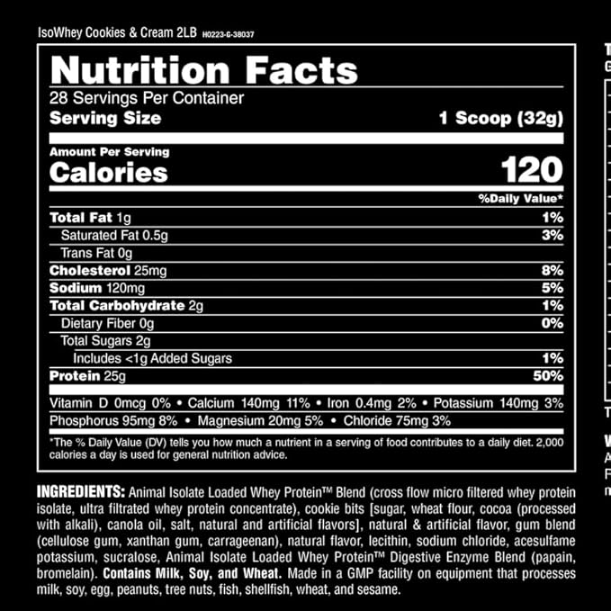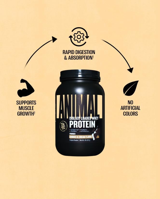 Animal Whey Isolate Protein Powder - Loaded for Pre & Post Workout Muscle Builder and Recovery with Digestive Enzymes for Men & Women - 25g Protein, Great Taste, Low Sugar - Cookies & Cream 2 lbs