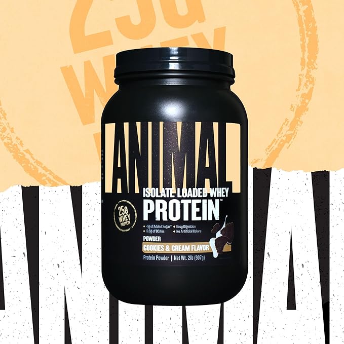 Animal Whey Isolate Protein Powder - Loaded for Pre & Post Workout Muscle Builder and Recovery with Digestive Enzymes for Men & Women - 25g Protein, Great Taste, Low Sugar - Cookies & Cream 2 lbs
