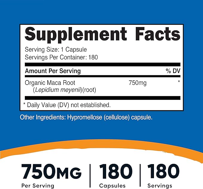 Nutricost Maca Root (Lepidium meyenii) 750mg, 180 Capsules, 180 Servings