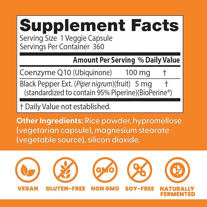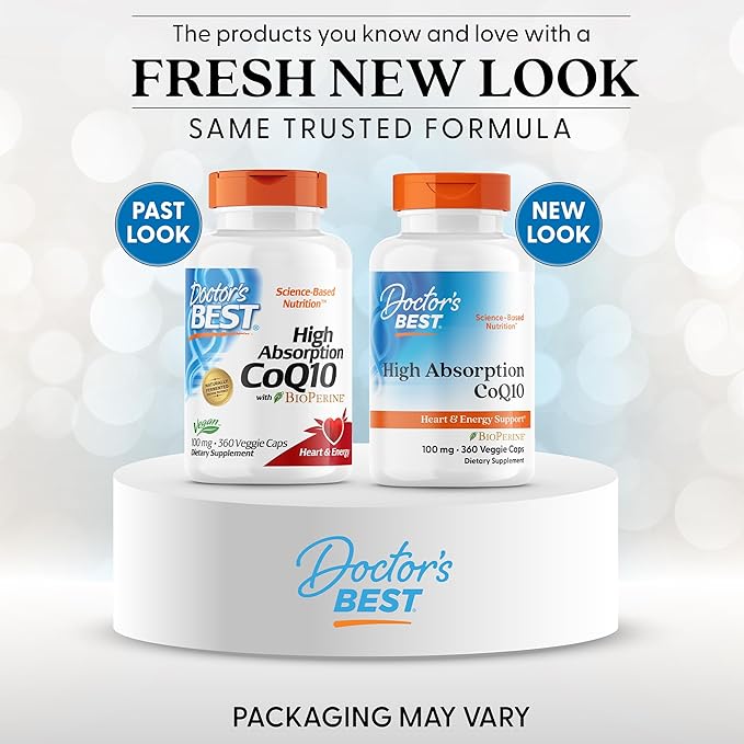 Doctor's Best High Absorption CoQ10 with BioPerine, Gluten Free, Naturally Fermented, Vegan, Heart Health & Energy Production, 100 mg 360 Veggie Caps(Pack of 1)