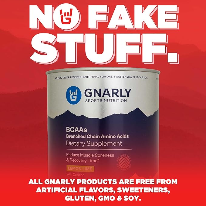 Gnarly Nutrition BCAA Powder - Pre-workout BCAAS Amino Acids, NSF Contents Certified, Supplement to Support and Rebuild Muscle - Lemon Lime, Caffeine (10.58oz)