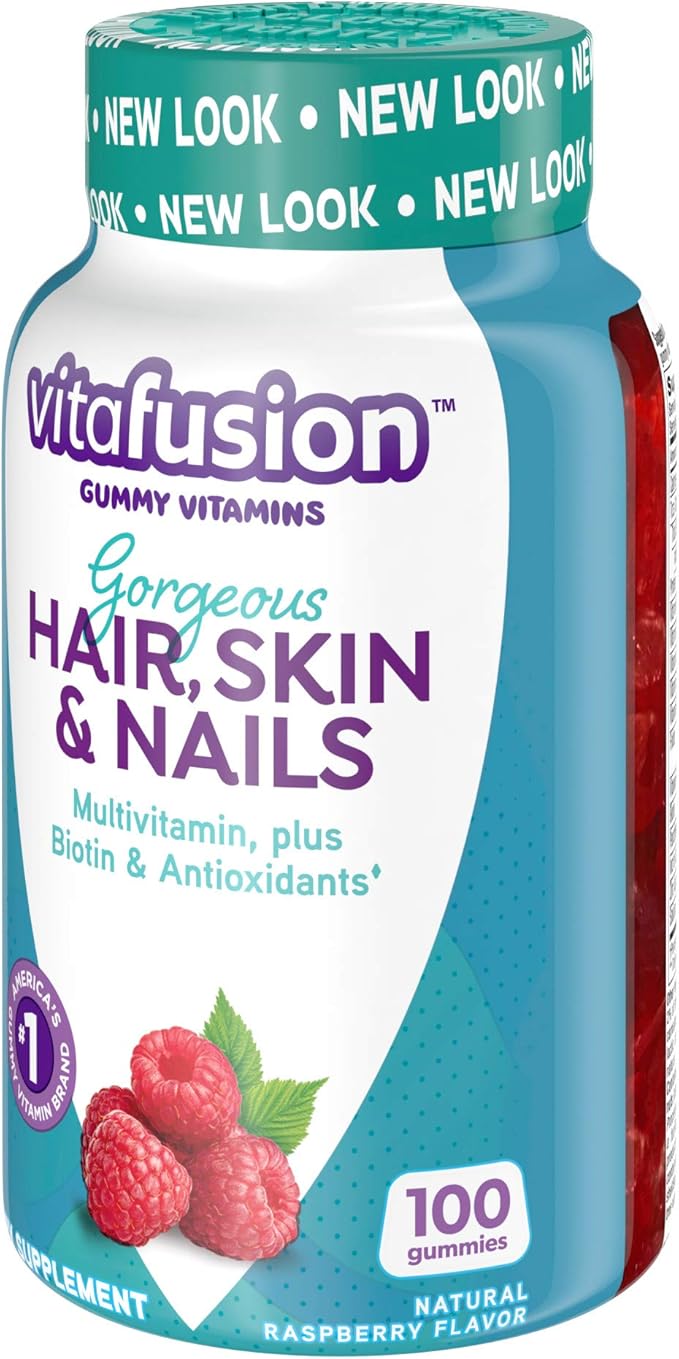Vitafusion Gorgeous Hair, Skin Nails Multivitamin Gummy Vitamins, plus Biotin and Antioxidant vitamins CE, Raspberry Flavor, 100ct (33 day supply), from America’s Number One Gummy Vitamin Brand