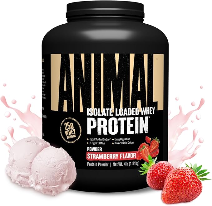 Animal Whey Isolate Protein Powder - Loaded for Pre & Post Workout Muscle Builder and Recovery with Digestive Enzymes for Men & Women - 25g Protein, Great Taste, Low Sugar - Strawberry 4 lbs