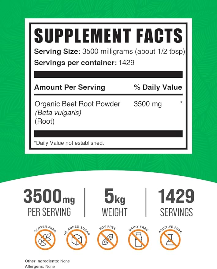 BulkSupplements.com Organic Beet Root Powder - Beet Powder Organic, Beetroot Supplement - Superfood Supplement, Vegan & Gluten Free - 3500mg per Serving, 5kg (11 lbs) (Pack of 5)