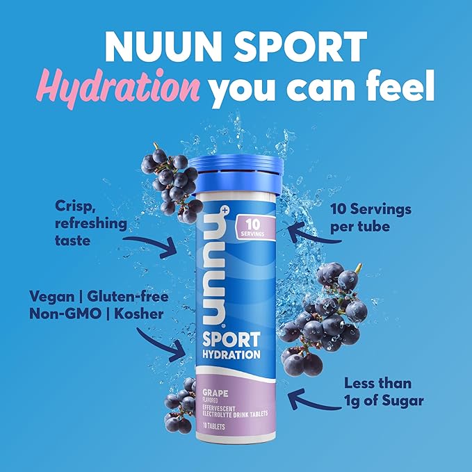 Nuun Sport Electrolyte Tablets - Dissolvable in Water, Grape, 5 Essential Electrolytes for Hydration, 1g Sugar Drink Mix, Vegan, Non-GMO, 8 Pack (80 Total Servings)