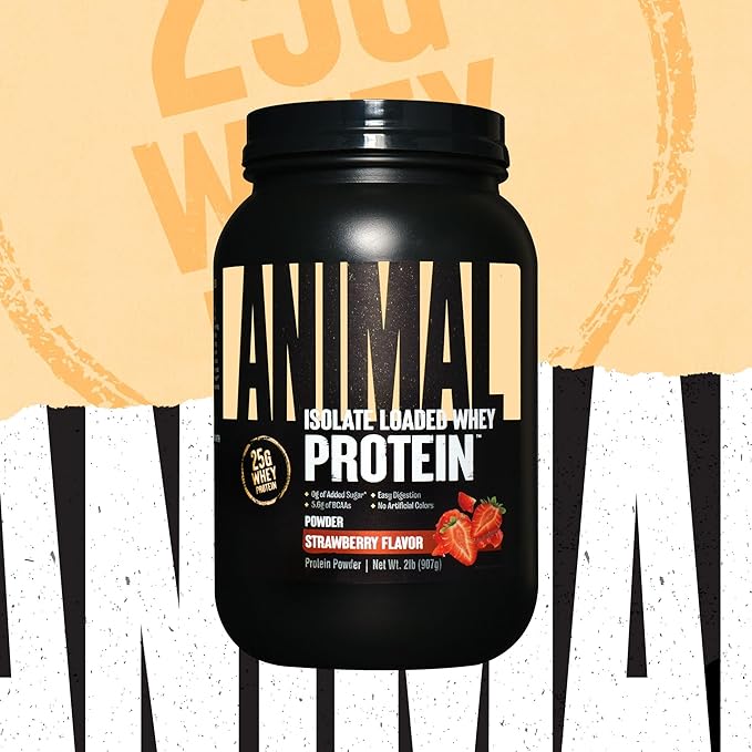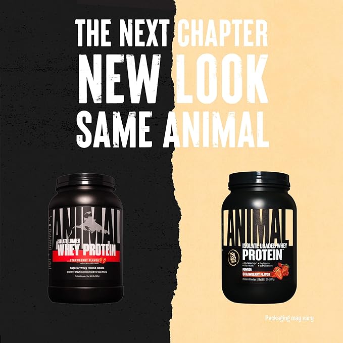 Animal Whey Isolate Protein Powder - Loaded for Pre & Post Workout Muscle Builder and Recovery with Digestive Enzymes for Men & Women - 25g Protein, Great Taste, Low Sugar - Strawberry 2 lbs