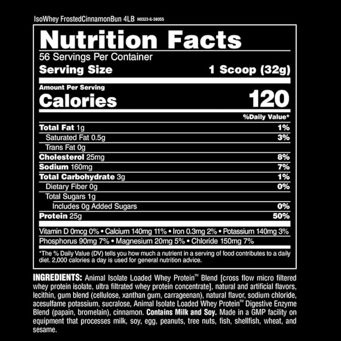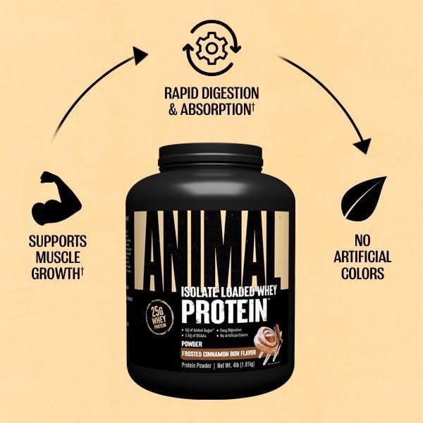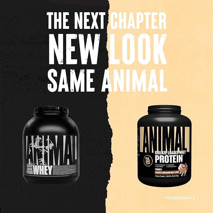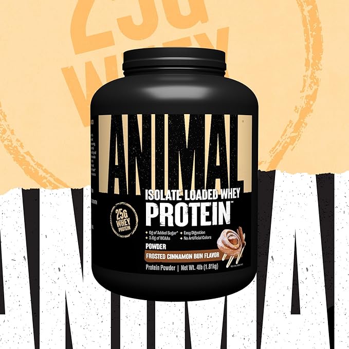Animal Whey Isolate Protein Powder - Loaded for Pre & Post Workout Muscle Builder and Recovery with Digestive Enzymes for Men & Women - 25g Protein, Great Taste, Low Sugar - Frosted Cinnamon Bun 4 lbs
