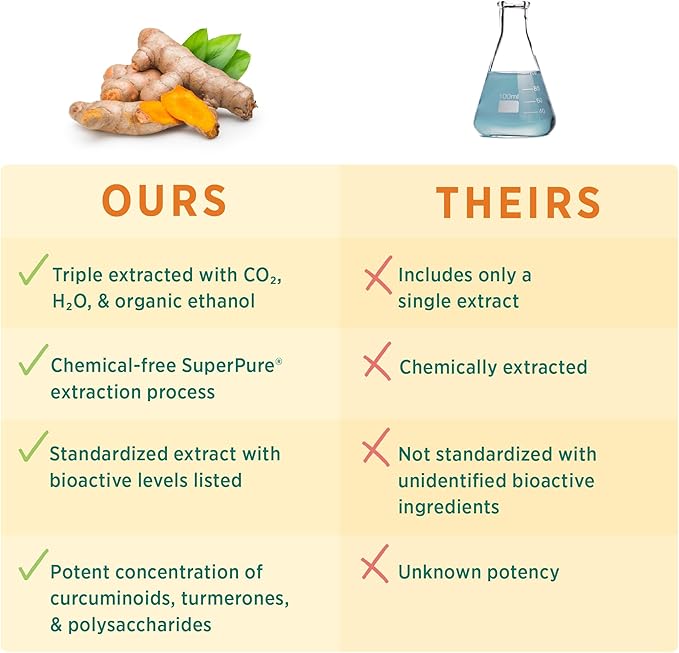 - BIOAVAILABLE BENEFITS: Triple-extracted to concentrate turmeric’s full spectrum of phytonutrients; synergistic compounds promote optimal bioavailability and absorption.