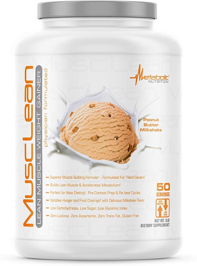 Metabolic Nutrition - Musclean - Milkshake, Whey High Protein Meal Replacement, Maintenance Nutrition, Low Carb, Keto Diet, Digestive Enzymes, Peanut Butter, 5 Pound (50 ser)