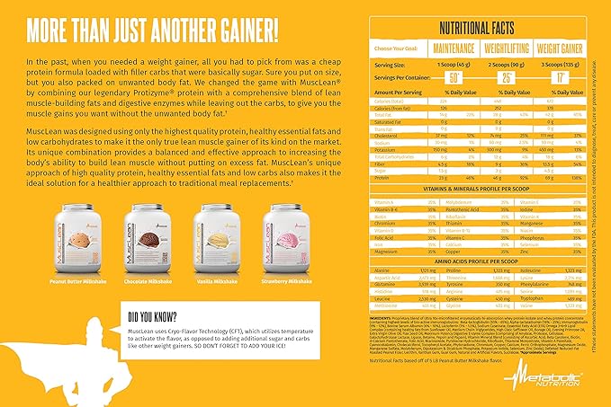 - MuscLean’s enzyme coated, high essential fatty acid protein works with your body to digest easily and absorb quickly. Fortified with 24 vitamins and minerals, providing a well-balanced high protein keto, low carb, low sugar meal that you decide the protein and calorie level to fit your desired goals.