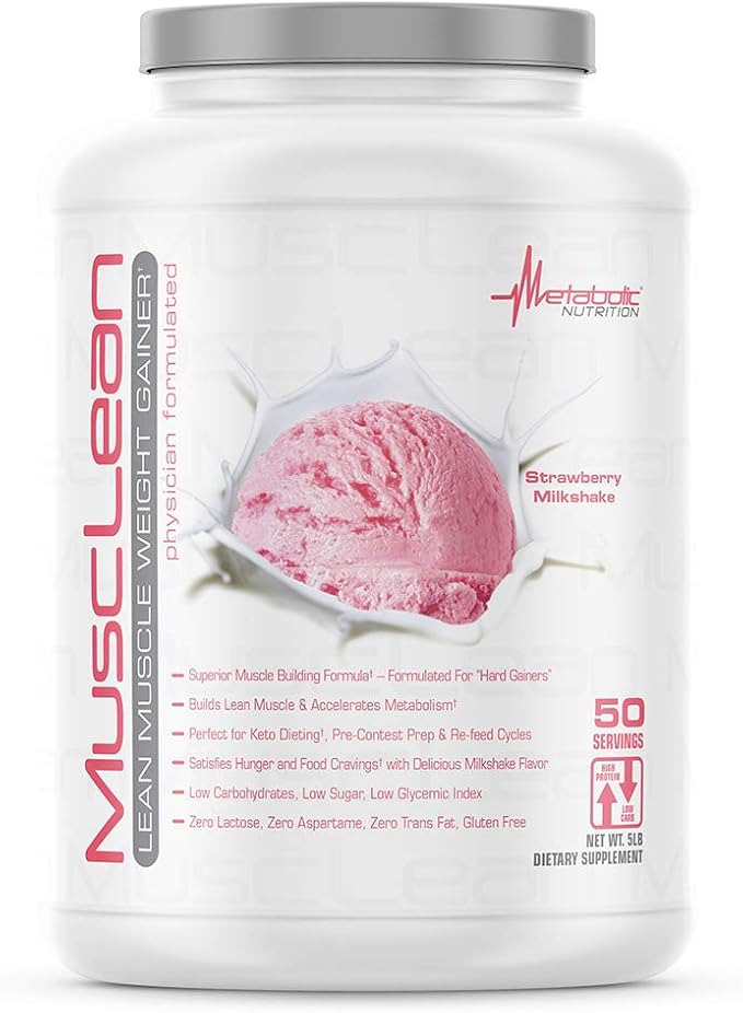 - MuscLean by Metabolic Nutrition is a Lean Muscle Keto Protein which supplies 100% 10x-microfiltered enzymatically whey protein isolate and concentrate, depending on serving size. It delivers 21g to a massive 69g of Protein with a powerful 14g of Essential Fatty Acids, Very Low Sugar: 1g, Low Sodium, Low Cholesterol, and gives a freedom to decide calories based on your athletic or physical needs from 218 up to 672 calories and contains 5 grams of BCAA’s & 4 grams of L-Glutamine per serving.