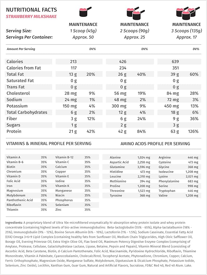 - High quality protein fuels muscle growth, increase strength and speed recovery by increasing protein synthesis to help push your performance and physique to the next level. Available in 5 delicious flavor of Chocolate, Peanut Butter, Strawberry & Vanilla Milkshake and in 2 sizes of 2.5 lbs and 5 lbs to choose from….delivering 25 or 50 individual servings.