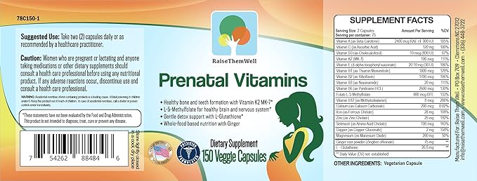 Physician Developed Prenatal Vitamin with Vitamins K2 MK-7, Methylfolate, and Glutathione | 150 Veggie Capsules