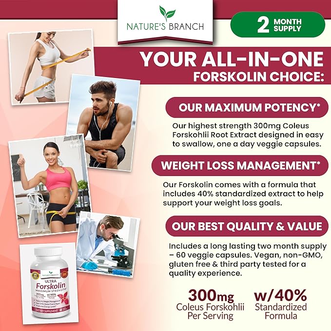 - OUR MAXIMUM STRENGTH FORSKOLIN FOR WEIGHT LOSS: Our highest strength, with a 40% standardized Forskolin formula, delivering a premium Coleus Forskohlii root extract per capsule. With 60 vegan capsules (2 month supply), our exclusive Forskolin extract contains 2X higher standardized ingredients than many other leading brands