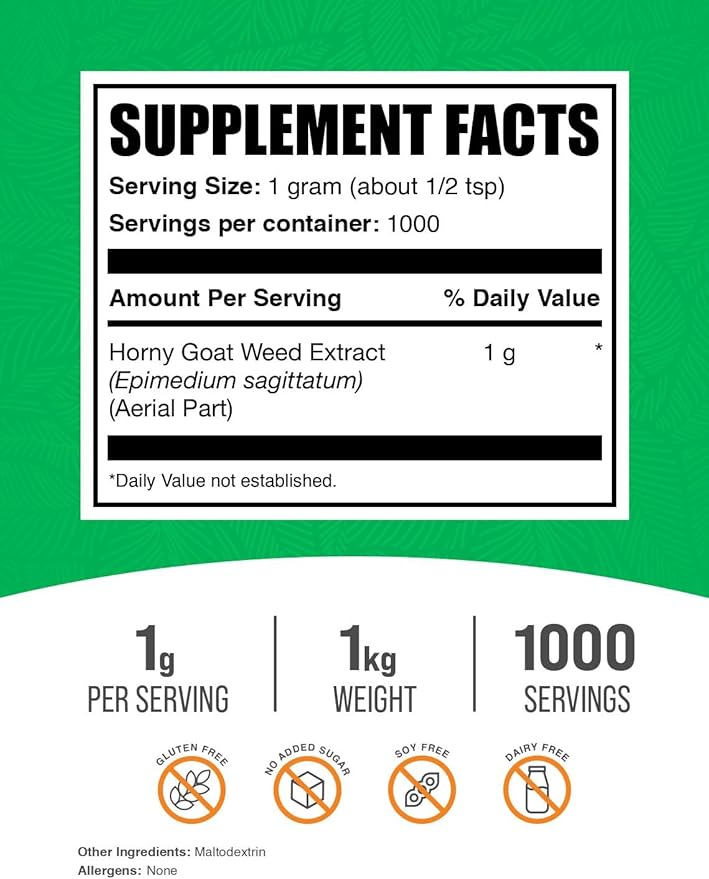 BulkSupplements.com Horny Goat Weed Extract - Epimedium Extract, Horny Goat Weed Herbal Supplements, Horny Goat Weed Powder- Gluten Free, 1000mg per Serving, 1kg (2.2 lbs) (Pack of 1)