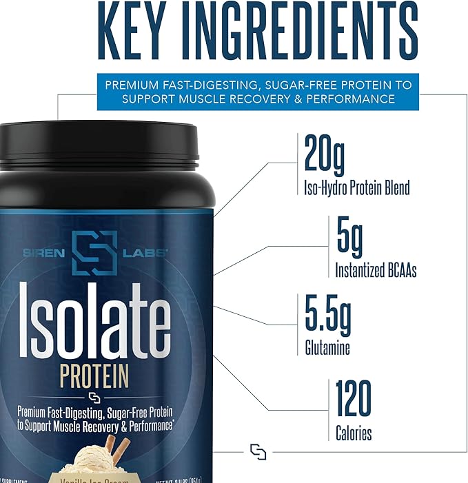 Siren Labs Isolate Premium Whey Protein Powder Keto Isolate and Hydrolysate with Amino Acids including Glutamine for Lean Muscle Growth and Recovery - Vanilla Ice Cream (30 Servings)