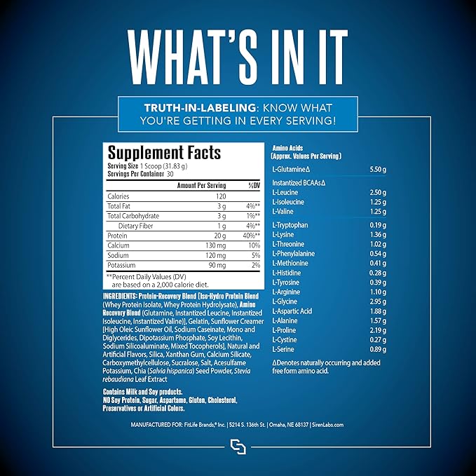 - Pure Protein: Formulated with only pure sources of protein and no amino spiking. SirenLabs ISOLATE PROTEIN does not contain soy protein, aspartame, gluten, yeast, preservatives, or artificial colors.
