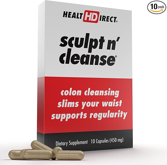 Health Direct Sculpt n' Cleanse - Herbal Colon Cleanse for Digestive Health & Regularity - Natural Detox & Gut Flush Supplement - Weight Management Support - 10 Veggie Capsules