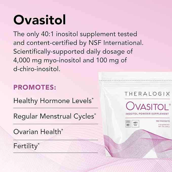 Theralogix Ovasitol Inositol Powder Packets - 90-Day Supply - Myo-Inositol & D-Chiro Inositol for Hormone Balance & Ovarian Function Support* - NSF Certified - 180 Packets