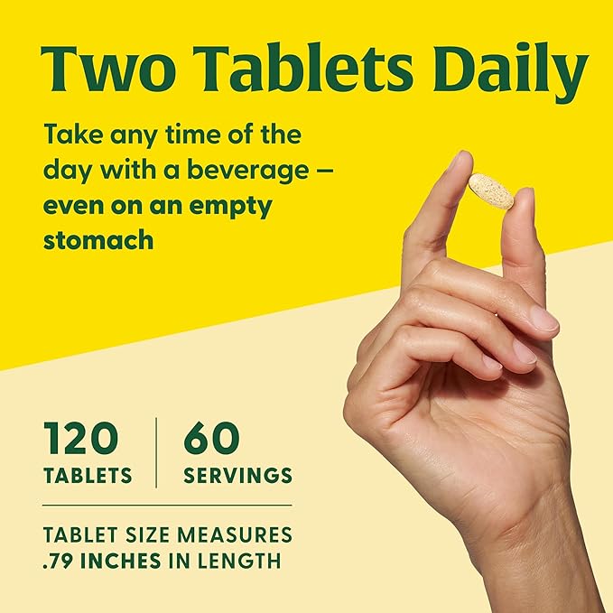 - Can be taken any time of day, even on an empty stomach. 2 tablets daily