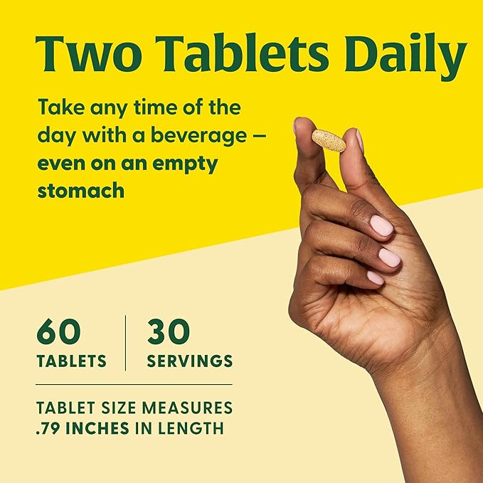 - Can be taken any time of day, even on an empty stomach. 2 tablets daily