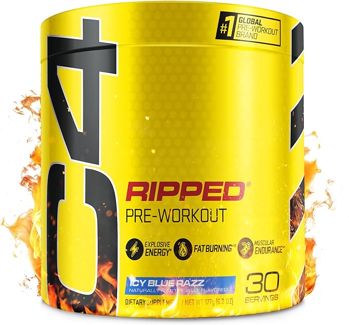 Cellucor C4 Ripped Pre Workout Powder for Energy, Beta Alanine, Sugar Free Energy Supplement Preworkout for Men & Women - 150mg Caffeine + Creatine-Free - ICY Blue Razz - 30 Servings