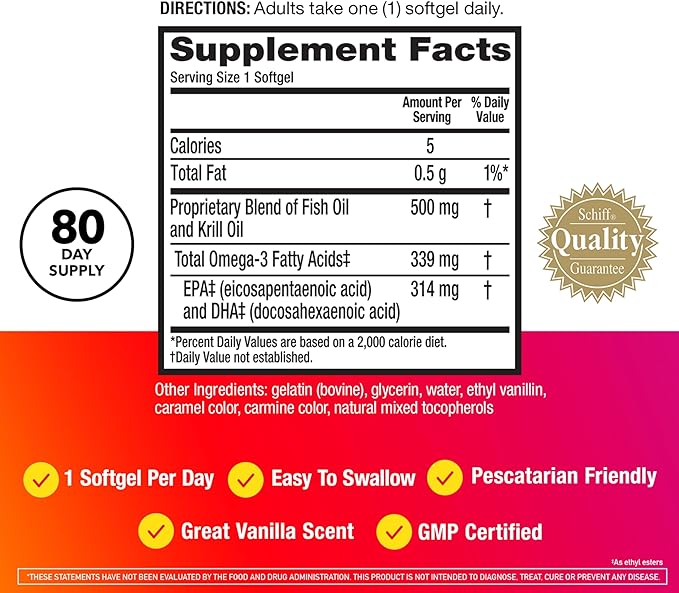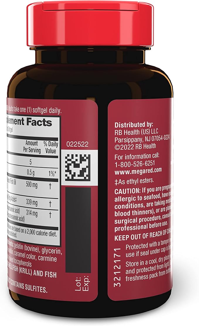 Megared Omega-3 Fish Oil + High Absorption Krill Oil 500mg Softgels, MegaRed Advanced 4in1 (80 count in a bottle) Concentrated Omega-3 Fish & Krill Oil Supplement