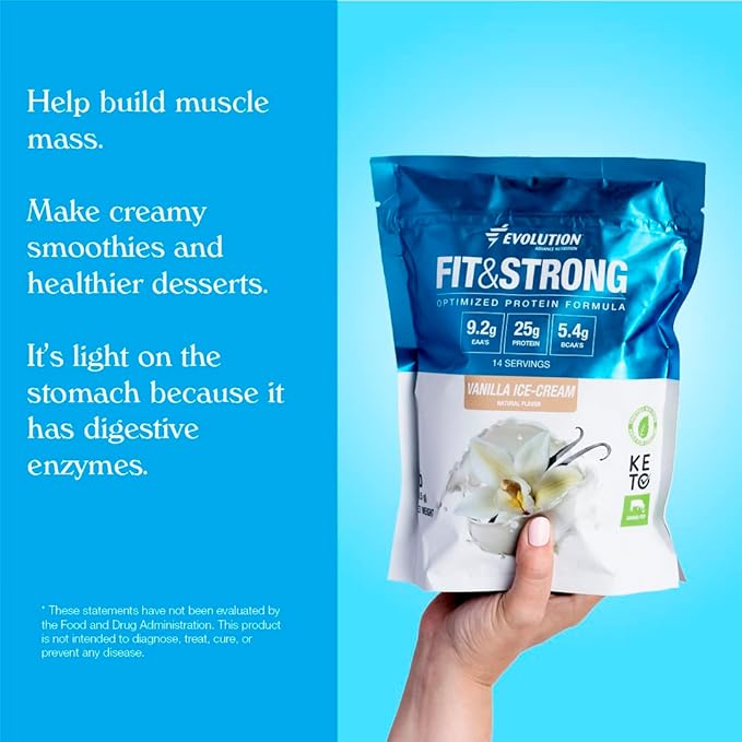 - INCREASE YOUR INTAKE OF PROTEIN – The human body needs protein to build and maintain muscle mass. If you are looking for a healthy alternative to whey protein, Evolution Fit&Strong is the right choice! Our formula contains 25 grams of protein per serving