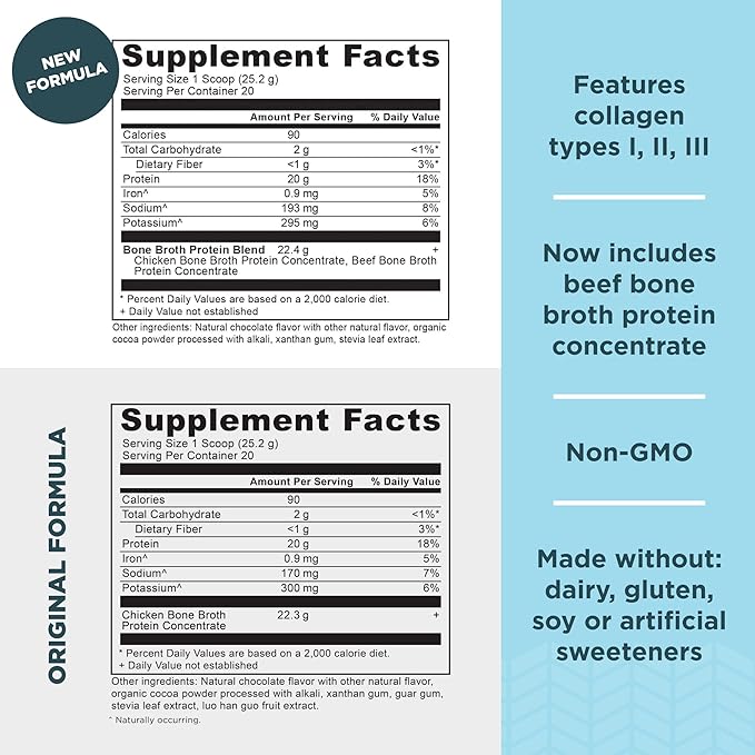 - BREAKTHROUGH PROTEIN FORMULATION - When it comes to protein content, this formula is twice as potent compared to leading bone broth brands, 3x more potent than homemade broth, and it contains 5x more micro and macronutrients than the leading bone broth brands.
