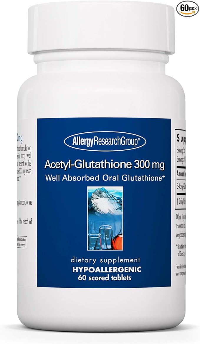Allergy Research Group Acetyl-Glutathione - S-Acetyl-L-Glutathione, Well Absorbed, Oral Glutathione, Immune Support, 300 mg Supplement - 60 Count