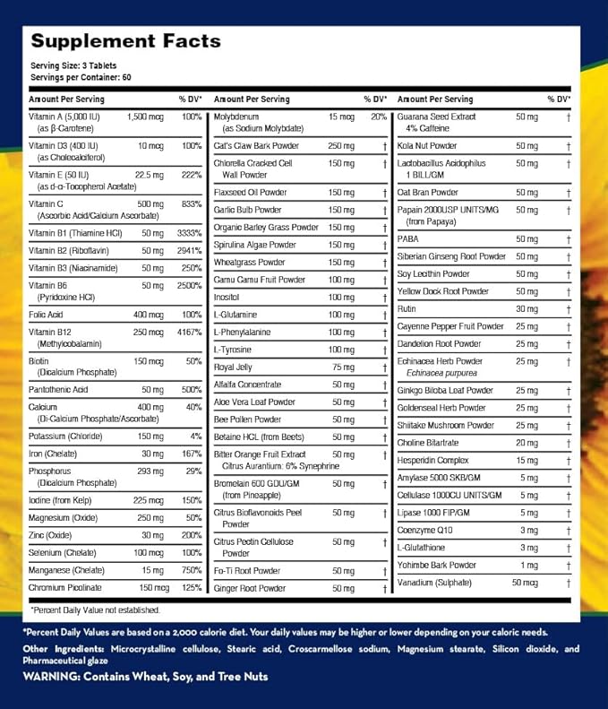 LifeSource Complete Multi Vitamin & Minerals (180 Tablets) Includes 71 Whole Food Ingredients
