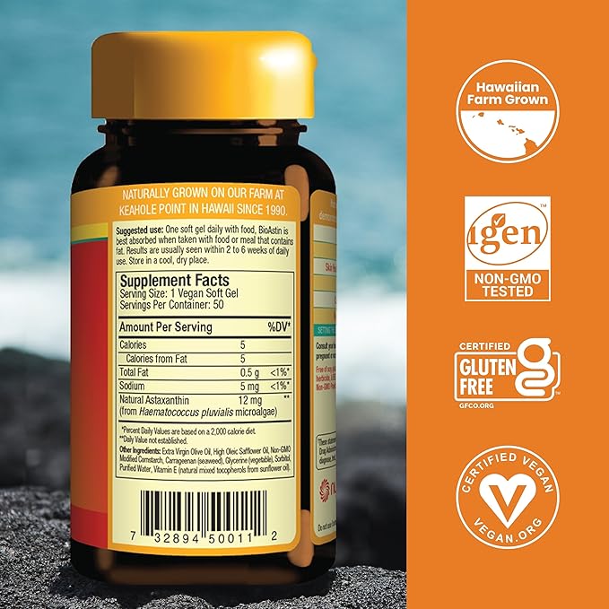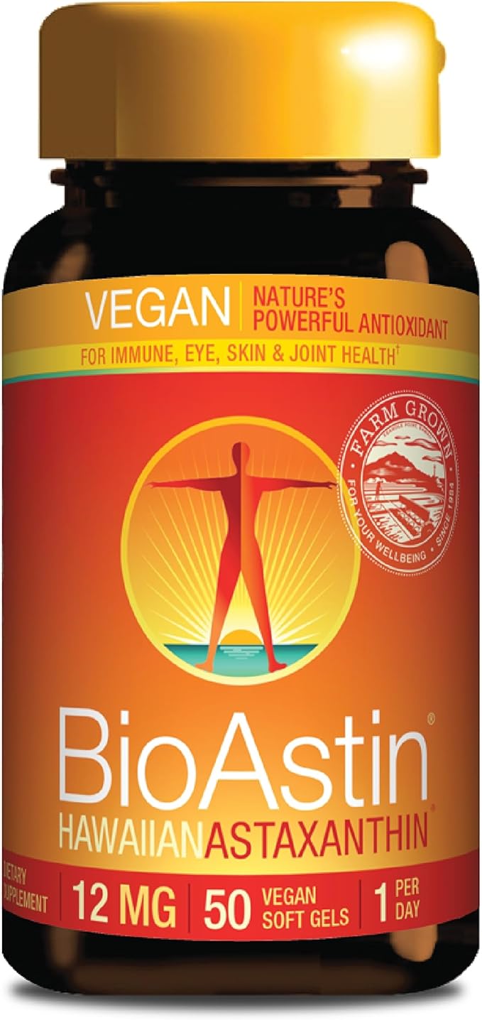 Nutrex Hawaii Vegan BioAstin Hawaiian Astaxanthin - 12mg, 50 Softgels - Farm-Direct Premium Antioxidant Supplement to Support Eye, Skin, Joint & Immune System Health - Vegan, Non-GMO & Gluten-Free