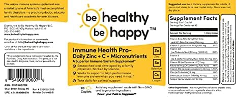 Be Healthy! Be Happy! Immune Health Pro – Daily Zinc + C + Micronutrients Infection Fighting Superior Immune System Supplement