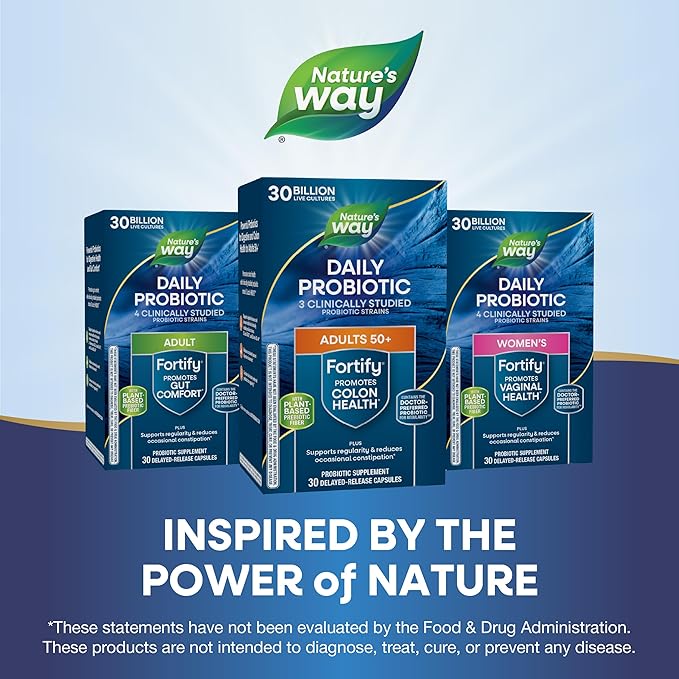 - Nature's Way Fortify 50+ Probiotic is formulated for adults 50+ with 11 probiotic strains to support colon, digestive, and immune health.* Plus plant-based prebiotic fiber, food for good bacteria.