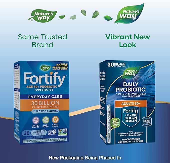 Nature's Way Fortify 50+ Daily Probiotic for Men and Women, 30 Billion Live Cultures, Colon, Digestive, and Immune Health Support* Supplement, 30 Capsules (Packaging May Vary)