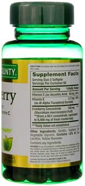 - QUALITY, PURITY, POTENCY: Nature’s Bounty is committed to safety and purity in all our supplements. Our Cranberry with Vitamin C Softgels are non-GMO and sugar- and gluten-free.
