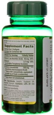 - ENHANCED WITH VITAMINS C AND E: Nature’s Bounty Cranberry with Vitamin C contains 4200mg of fruit extract plus 40mg of Vitamin C and the antioxidant benefits of Vitamin E.
