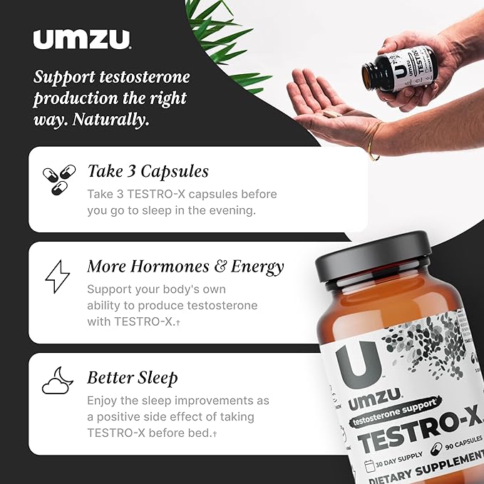 UMZU Testro-X Testosterone Supplement for Men | Support Energy, Strength, Stamina & Healthy T Levels (30 Day Supply | 90 Capsules)