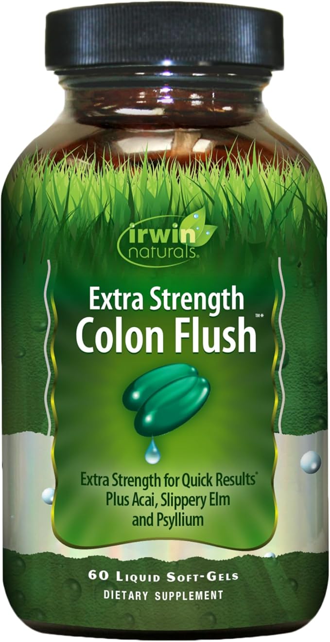Irwin Naturals Extra Strength Colon Flush Quick & Powerful Digestive + Constipation Support Supplement with Psyllium, Acai, Triphala + Soothing Botanicals - 60 Liquid Softgels