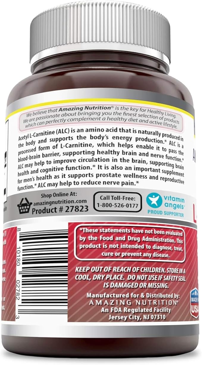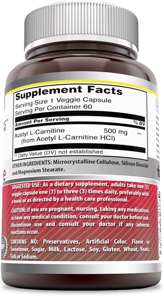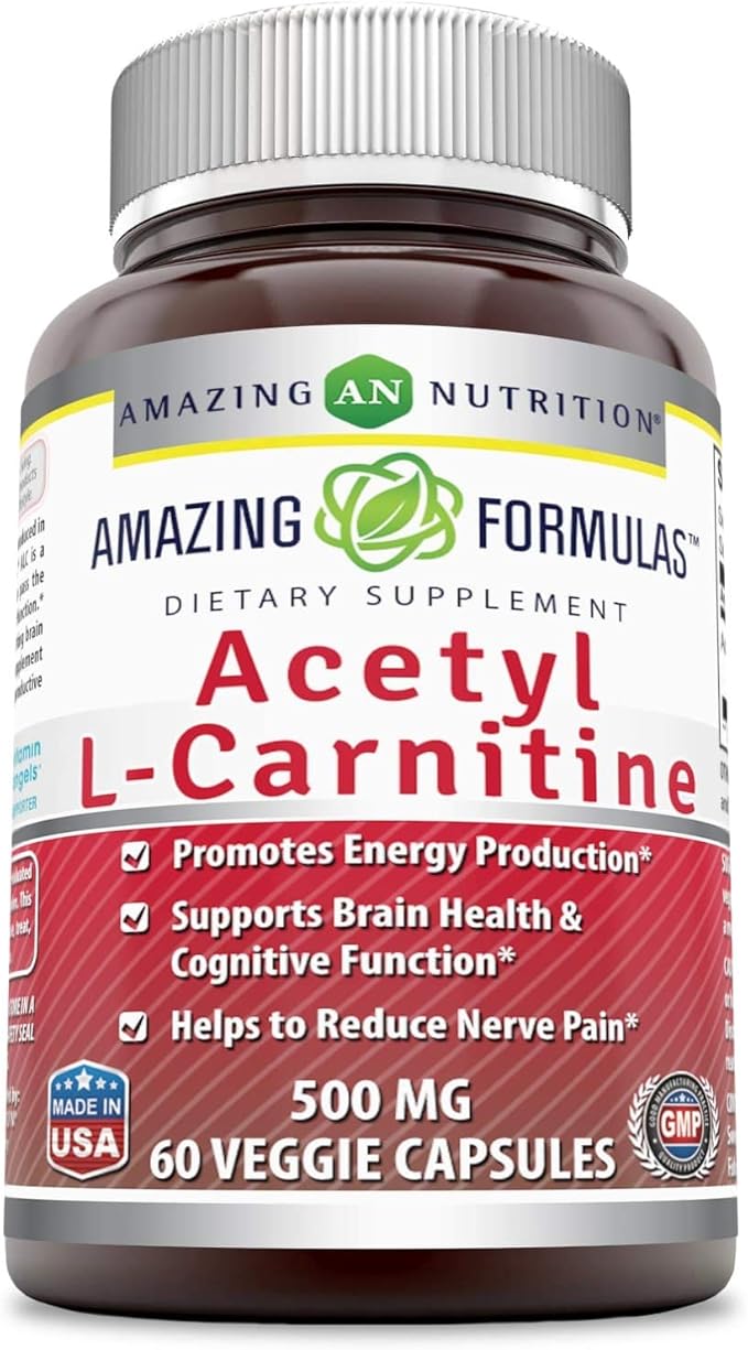 Amazing Formulas Acetyl L-Carnitine Hcl Veggie Dietary Supplement - 500 Mg, Veggie Capsules (Non GMO,Gluten Free) Per Bottle - Promotes Energy Production & Cognitive Function (60 Count)