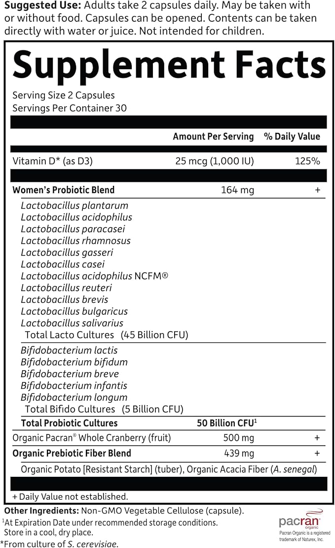 - DOCTOR FORMULATED PROBIOTICS FOR UT, DIGESTIVE AND IMMUNE HEALTH: This urinary tract supplement delivers 50 Billion CFU, 16 Probiotic Strains, 500mg Organic cranberry, 439mg of Organic Prebiotic Fiber and 1,000 IU of Vitamin D3—in just 2 capsules a day