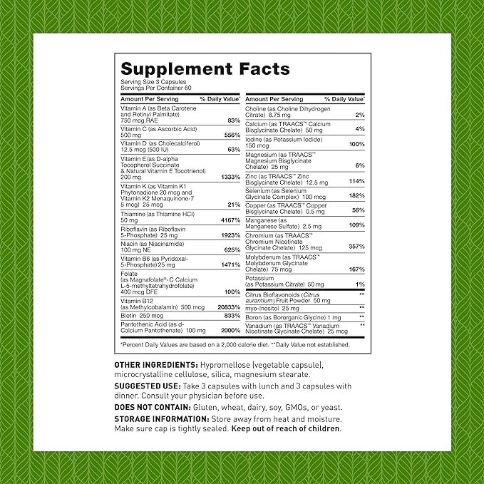 - Antioxidant-Rich Mineral Supplement: This multivitamin is formulated with vitamin E, folate, niacin, iodine, zinc, and selenium; support the body's cleansing process as well as heart and brain health