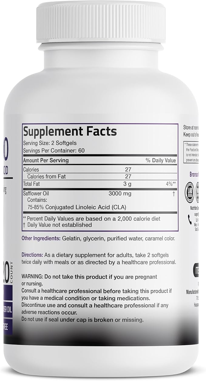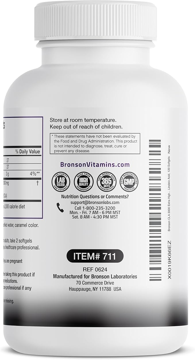 Bronson CLA 3000 Extra High Potency Supports Healthy Weight Management Lean Muscle Mass Non-Stimulating Conjugated Linoleic Acid 120 Softgels