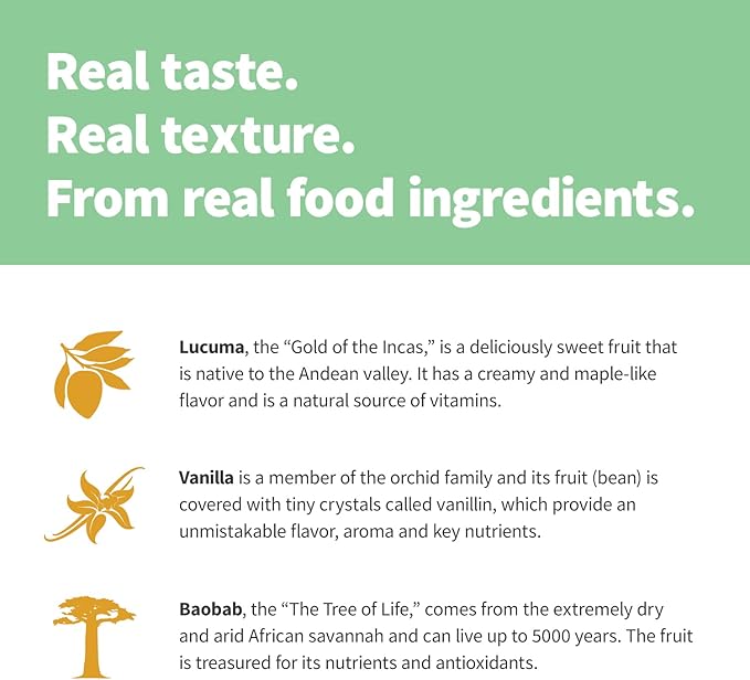 - SUPERFOOD-PACKED & DELICIOUS TASTE - Nutrient-rich superfood blend with exotic lucuma fruit and delicious vanilla bean; a creamy texture, rich real flavor and full-bodied sweetness with no 'fake' aftertaste; natural source of balance, stamina and beta-carotene. Tastes great, mixes well with no chalky taste or gritty texture. Perfectly smooth!