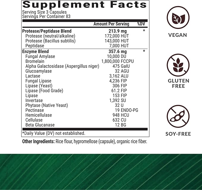 - Vegan Friendly: This digestive supplement is derived from a plant-based formulation that does not contain any fillers or artificial ingredients, is dairy-free, soy-free, and gluten-free