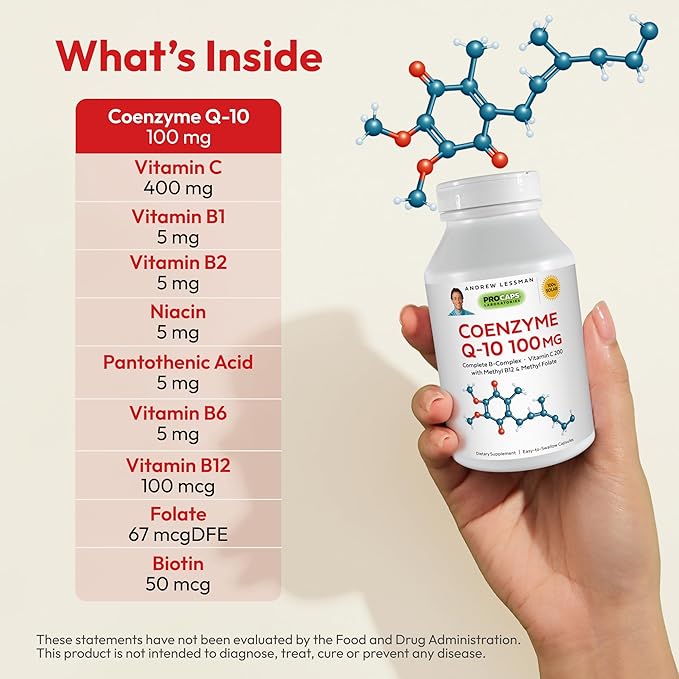 ANDREW LESSMAN Coenzyme Q-10 100 mg 60 Capsules – Essential for Energy Production and Optimum Key Organ Function, Anti-Oxidant Support, Depleted by Aging, Plus B-Complex. Easy to Swallow Capsules